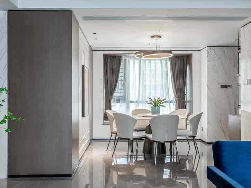 設(shè)計(jì)師在傳統(tǒng)法式的基礎(chǔ)上衍生出有新法式面貌的風(fēng)格,在保留法式的傳統(tǒng)裝飾圓度下做簡(jiǎn)化處理,形態(tài)簡(jiǎn)約而不失奢華,打造利落率性的氣質(zhì),呈現(xiàn)出時(shí)尚與奢華的空間。